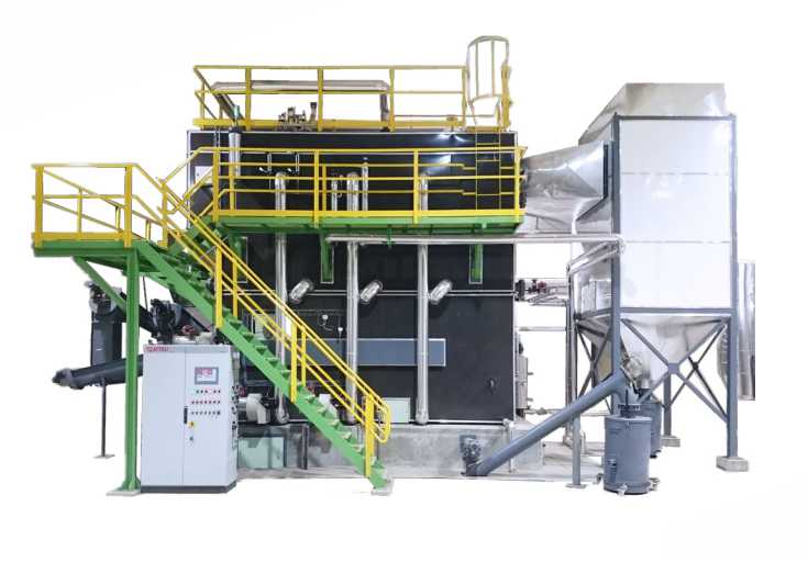 Caldeira horizontal de óleo térmico utilizando os nossos queimadores a Biomassa.
